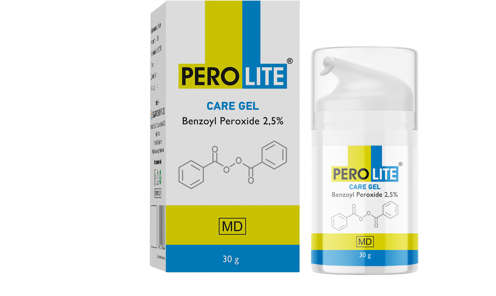 PEROLITE GEL 2.5% is a topical gel formulation containing benzoyl peroxide in hydrous and anhydrous forms. It is designed for dermatological management of acne-prone skin. The formulation utilizes a gel base with glycerol and acrylates copolymer to ensure uniform dispersion. Intended for external dermatological application.