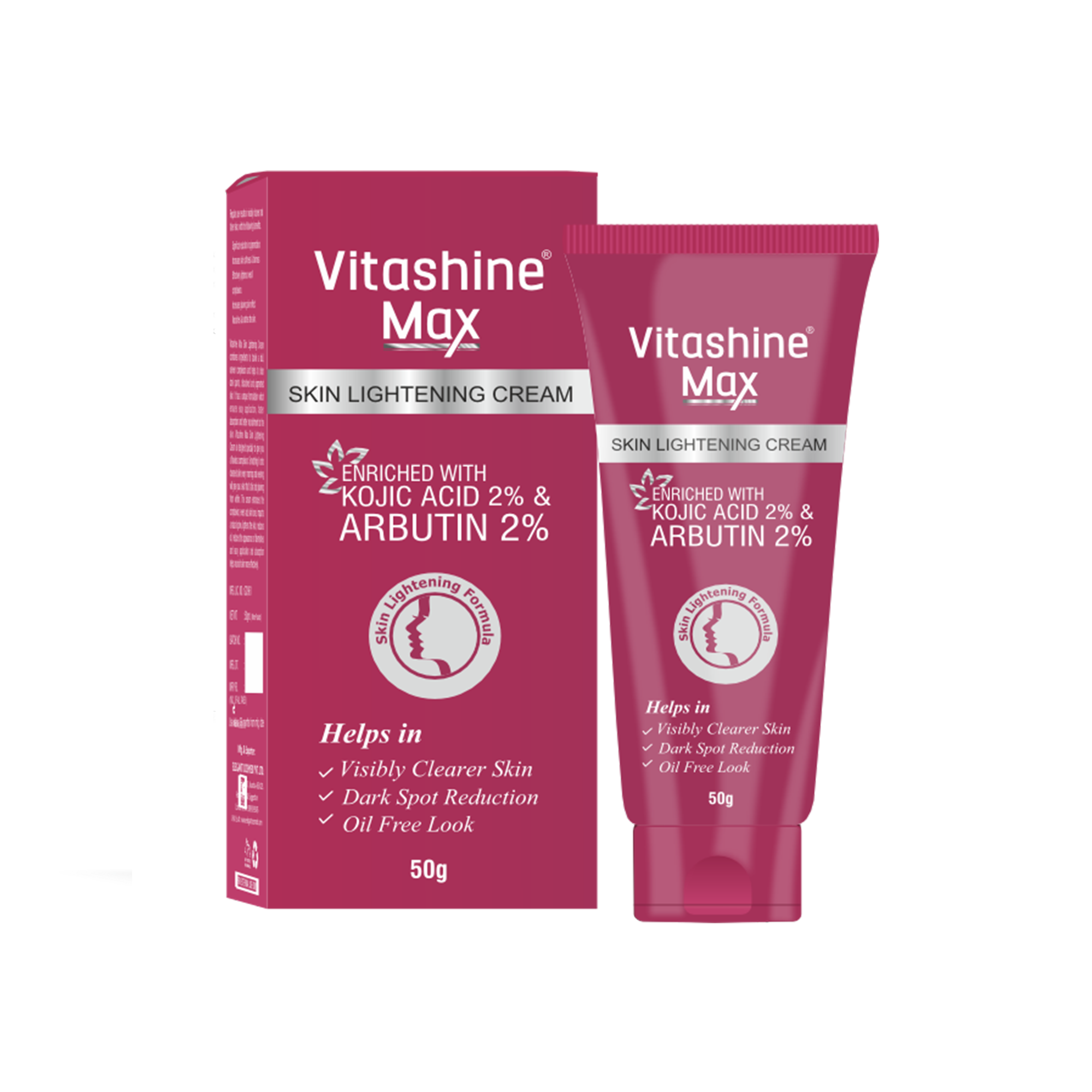 Vitashine Max Skin Lightening Cream is a multi-active topical cosmeceutical formulation developed to support skin tone regulation and pigment-related concerns. It combines depigmenting agents, antioxidants, keratolytic components, and photostable UV filters in a cream base. The formulation is designed for routine dermatological care where uneven pigmentation is a concern.
