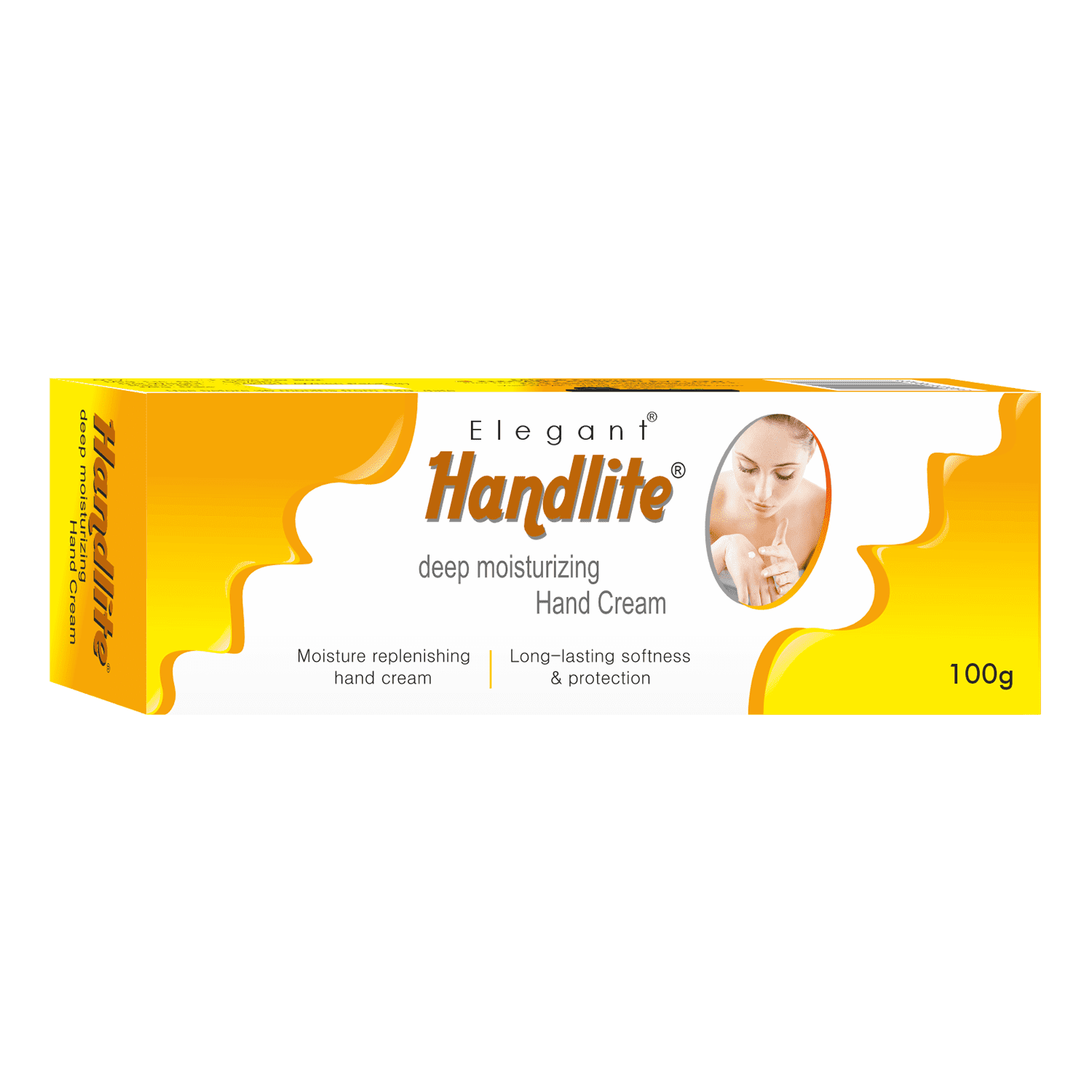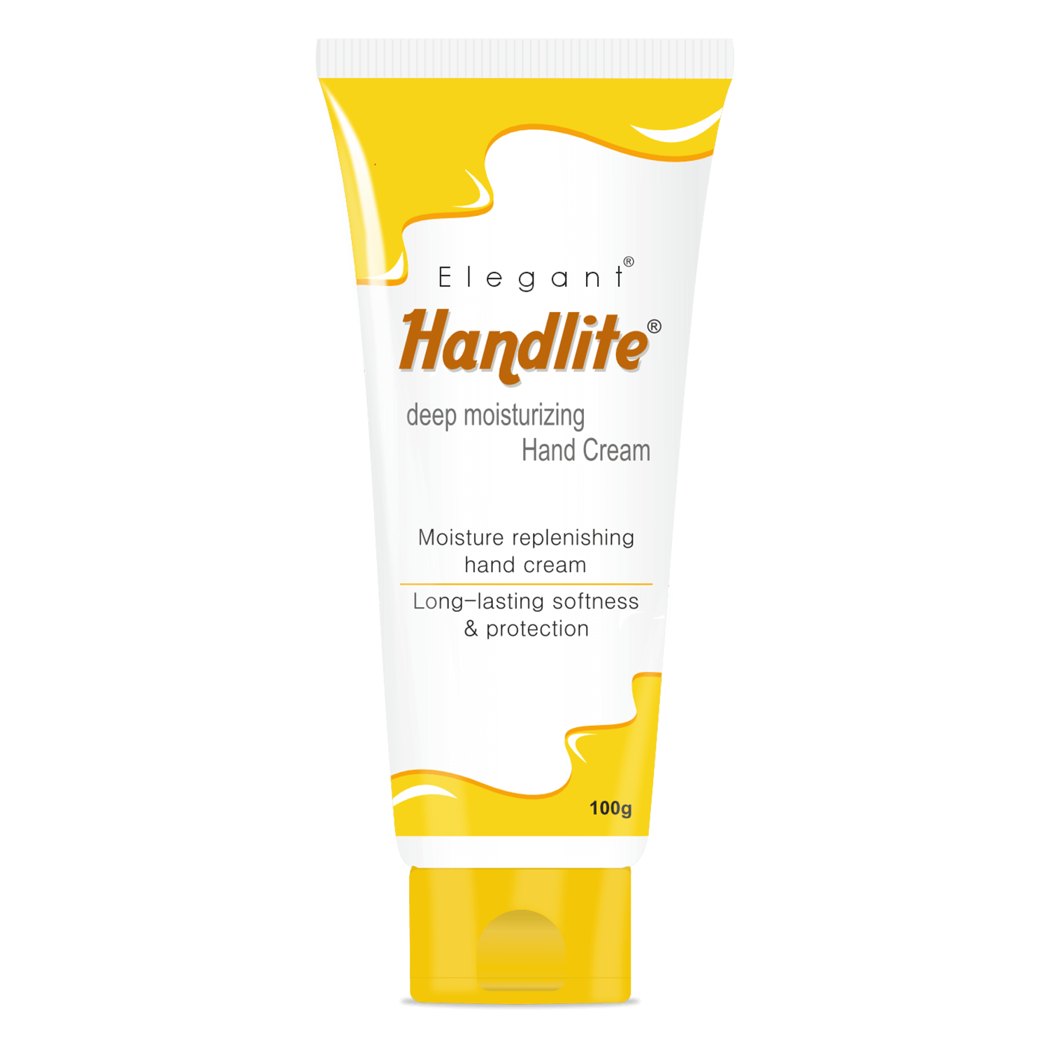 Elegant Handlite Cream is a topical emollient formulation developed for routine hand skin care. It combines humectants, keratolytic support, occlusives, and botanical lipids to address dryness and barrier compromise. The formulation is designed to support skin hydration and surface conditioning during regular exposure to environmental and occupational stressors.