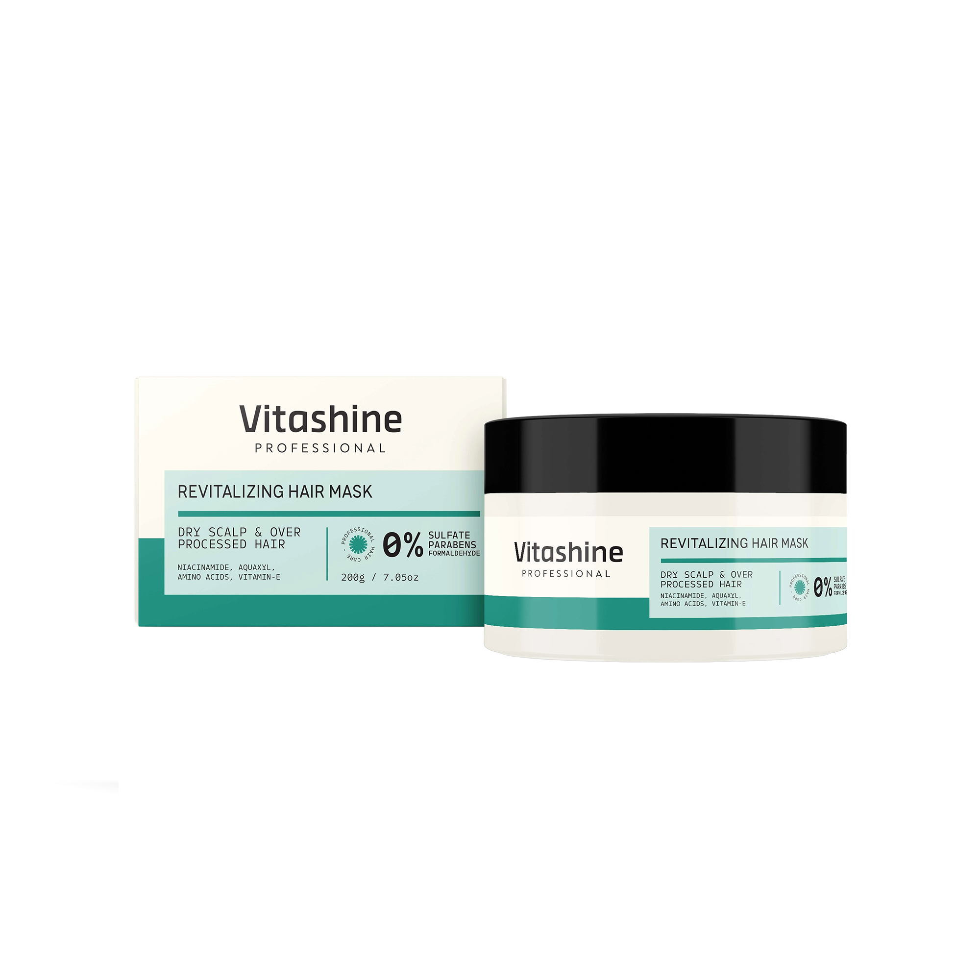 Vitashine Professional Revitalizing Hair Mask is a conditioning formulation developed to support hair fiber hydration, structural maintenance, and scalp compatibility. The product combines amino acids, humectants, and barrier-supporting agents within a professional-grade conditioning base. It is designed for use in hair care regimens requiring controlled nourishment and moisture balance.